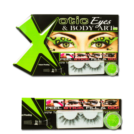 Use this Blacklight Reactive Green Purrr Eye Kit to accent your eyes.The blacklight reactive artistic applique designs are applied directly to the eye with a premium grade acrylic-adhesive, making it wearable and water proof.