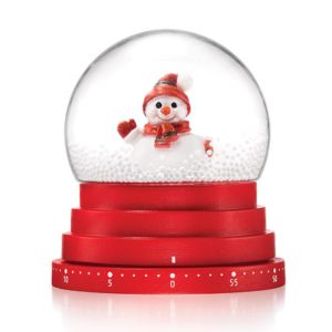 On your warm, get set, snow! A snow globe and kitchen timer in one. Shake up the snow globe to have snow flutter around. Kitchen timer can be set on the bottom.