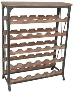 Our Barolo Wine Rack features a top and racks made of pine in a natural finish and a frame of antiqued iron.