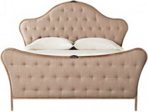 The sweeping curves of our Edgewood Upholstered Bed’s headboard and footboard are trimmed with metal in an antique beige finish.