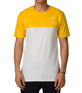 NIKE Crew neck with ribbed collar Athletic cut Short sleeves NIKE logo Air Force 1 script logo Graphic print Lightweight Dri-Fit fabric helps keep you dry during your workouts.